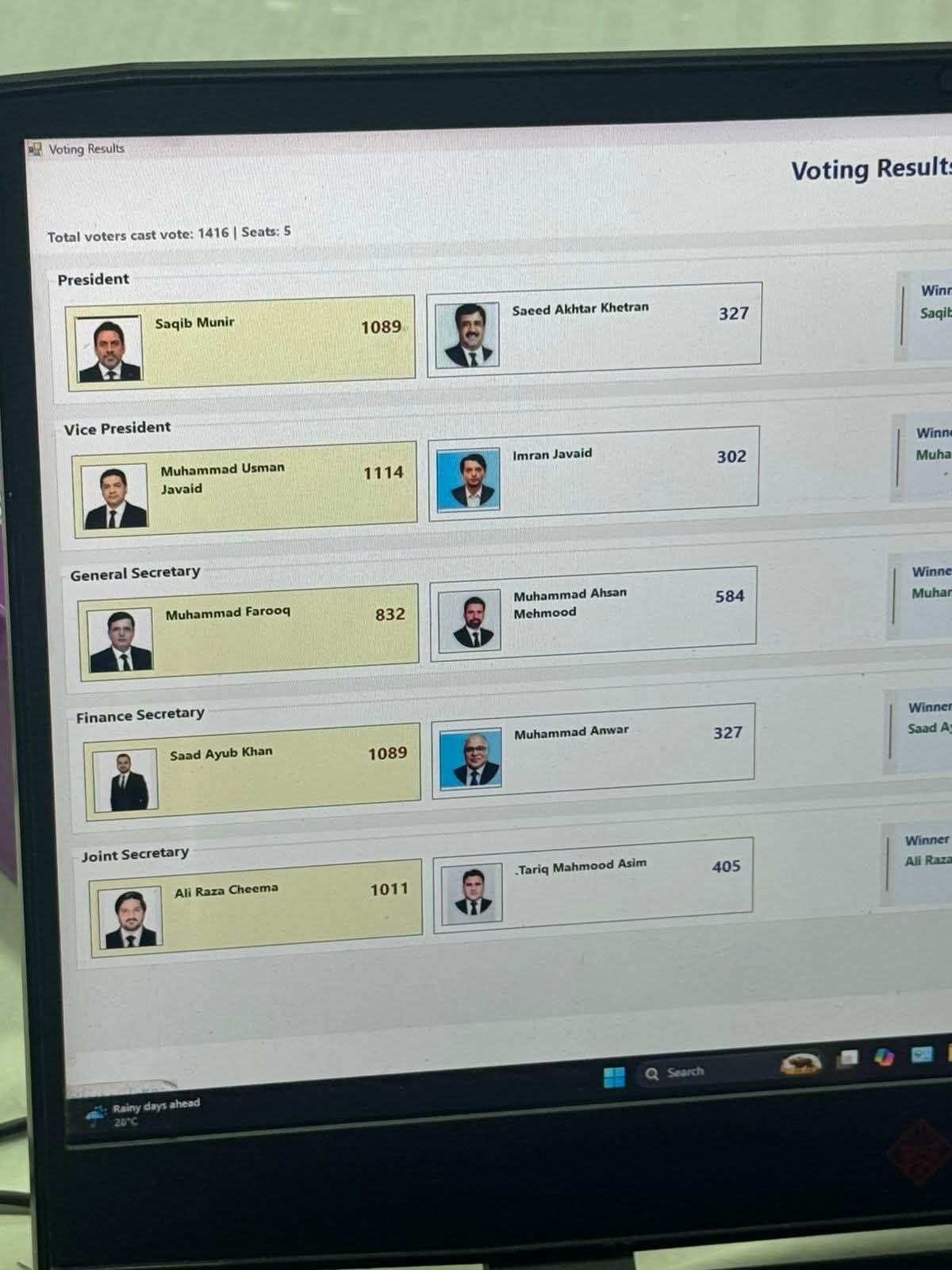 Saqib Munir — Elected with a decisive victory, securing 1,089 votes