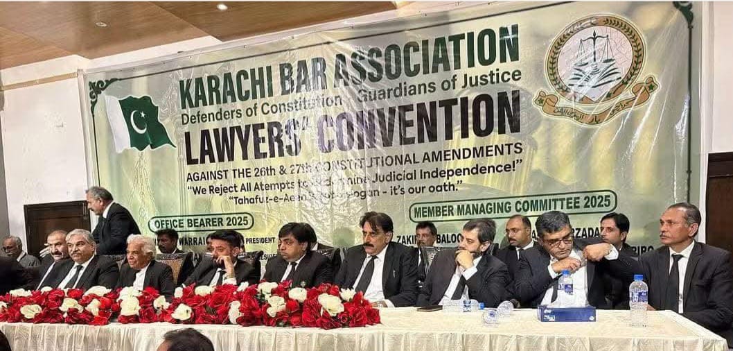 Karachi, 12 November 2025: The Karachi Bar Association (KBA) held a Lawyers’ Convention today at its auditorium, led by President Amir Wirraich and attended by